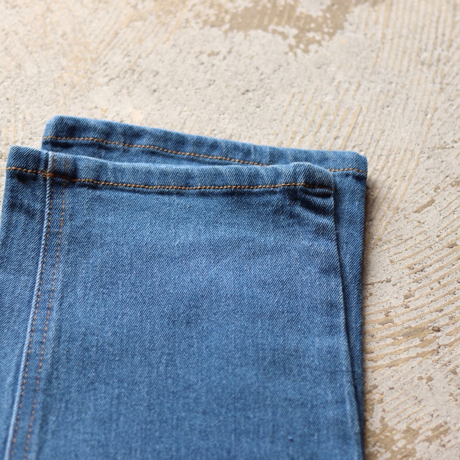 スラックスのような綺麗なフォルムと、ジャスト~ワンクッション程の丈感は足元で裾がもたつきません。
