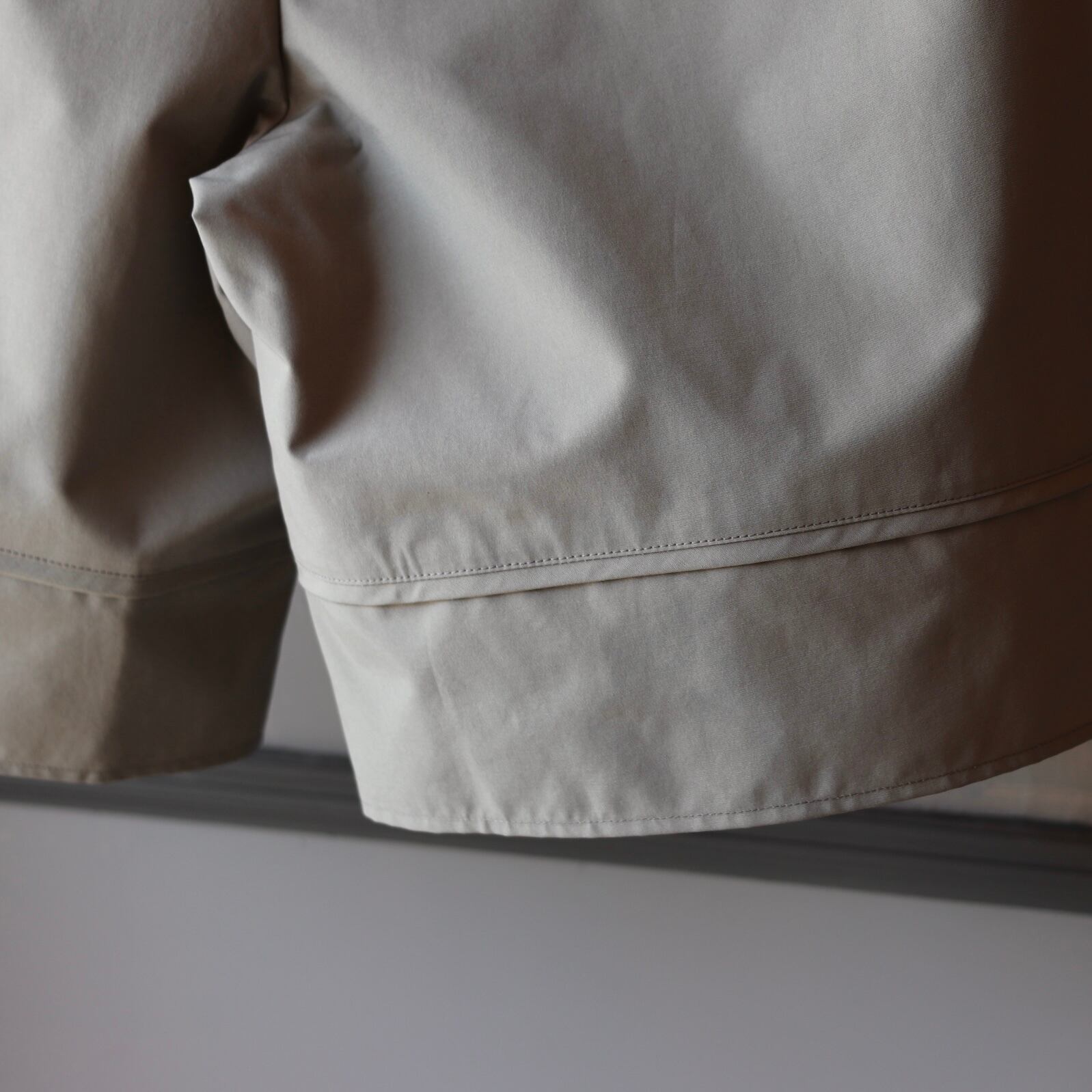 防水性が高く高密度に織られたウェザークロスを使用したワイドショートパンツ。