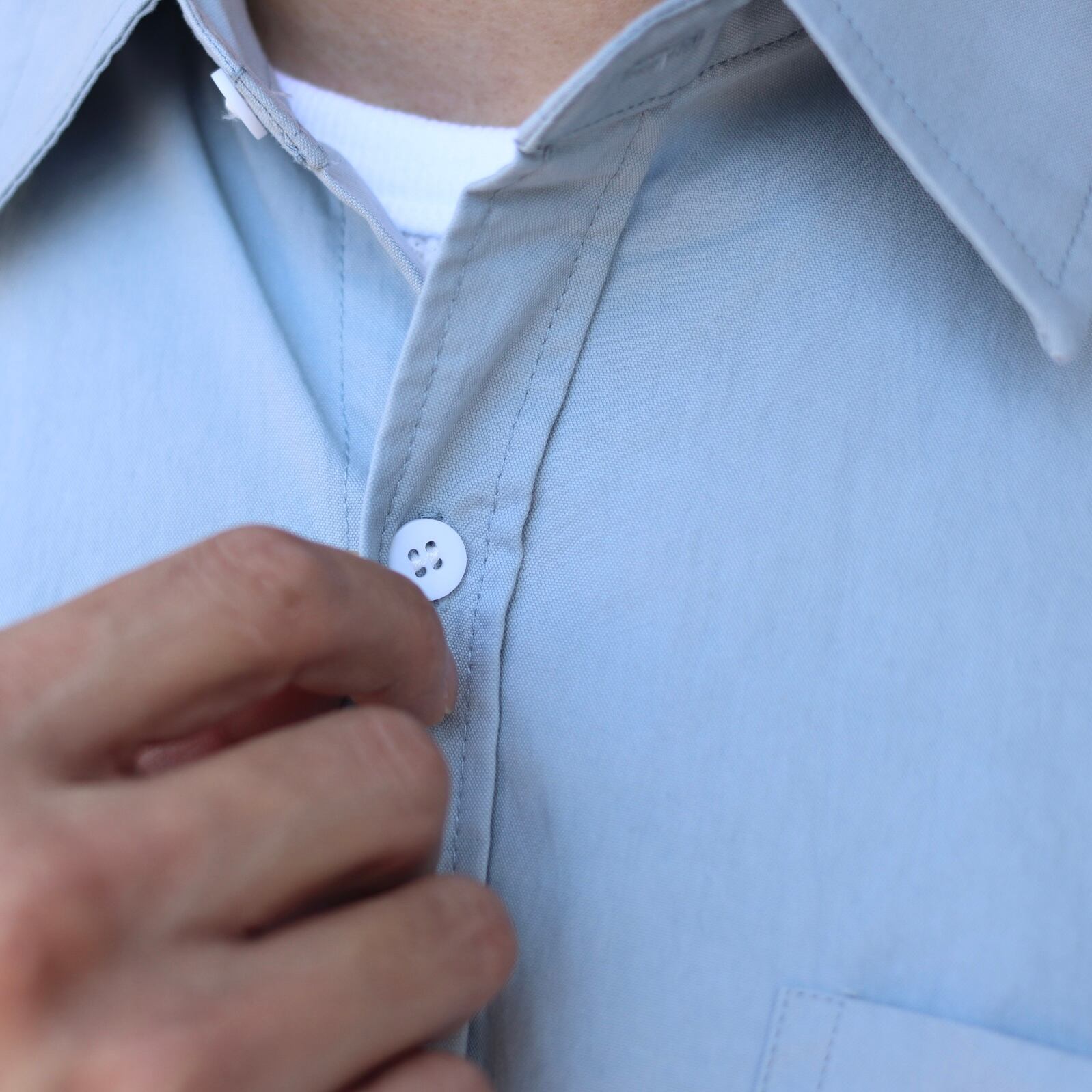 コットンベースにポリエステル混のヘビーオックス生地を使用した長袖シャツ。