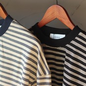 3本ラインと4本ラインの異なるボーダーピッチをおりまぜた遊び心のあるロングスリーブTシャツ。