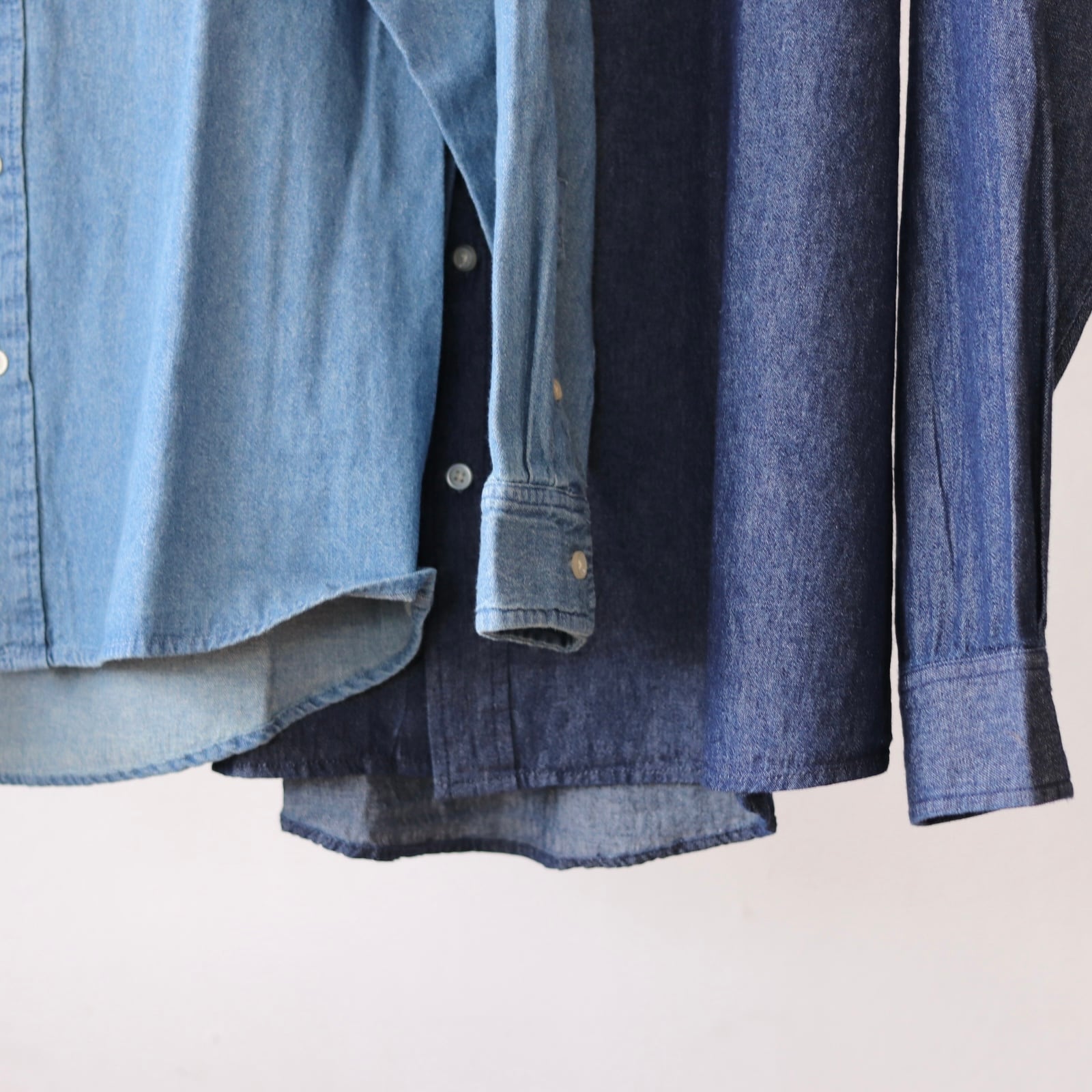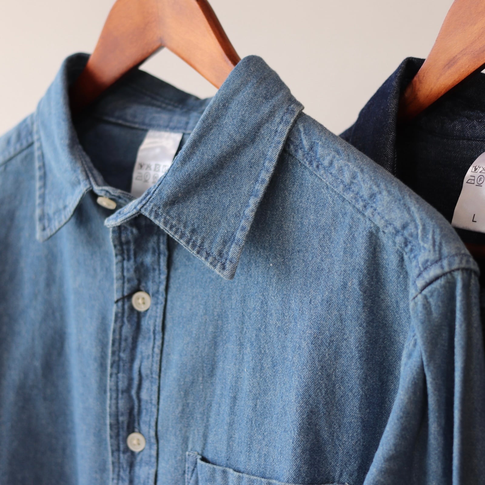 6ozの程よい肉感の100%コットンデニムシャツ。天然繊維のコットンは使い込むほどに、