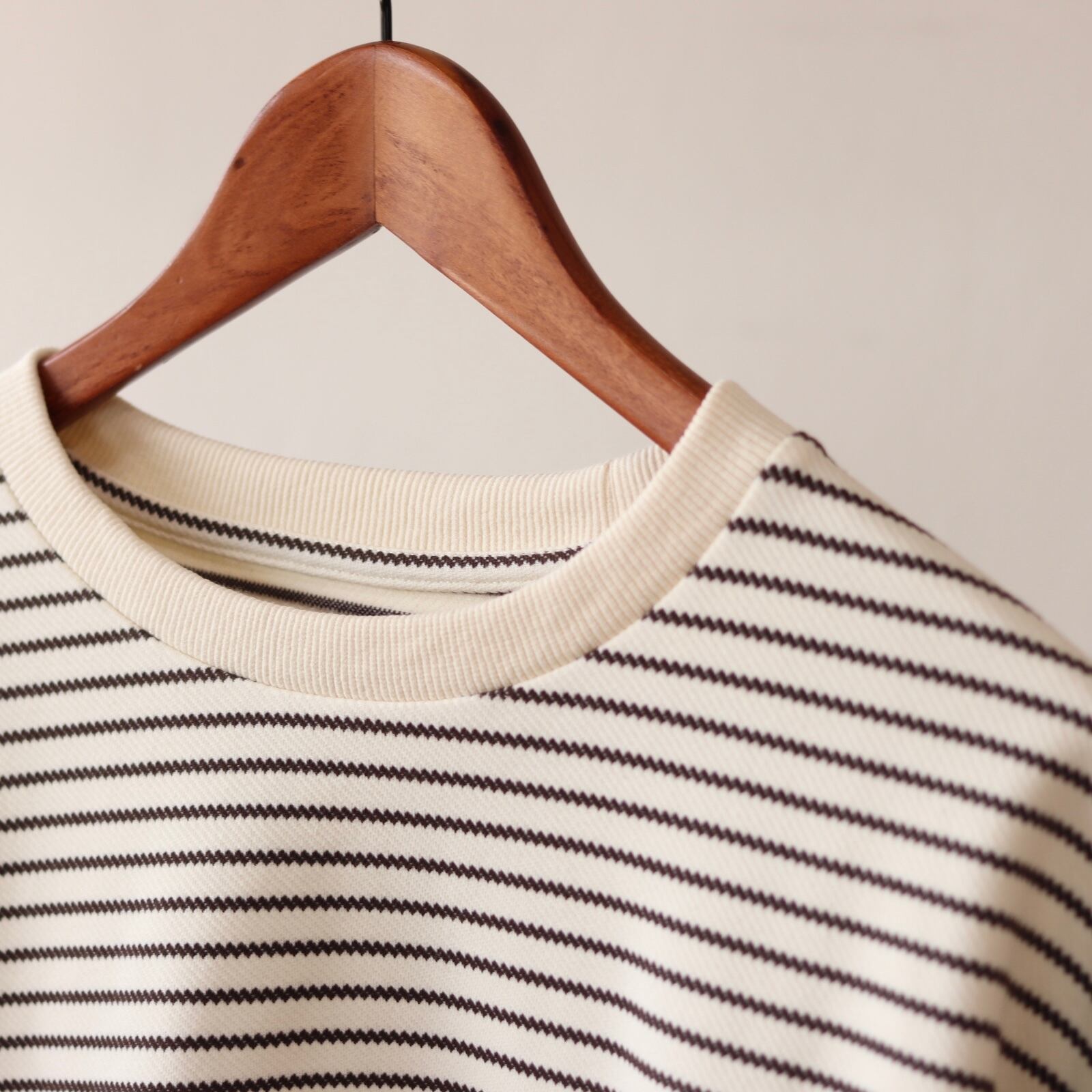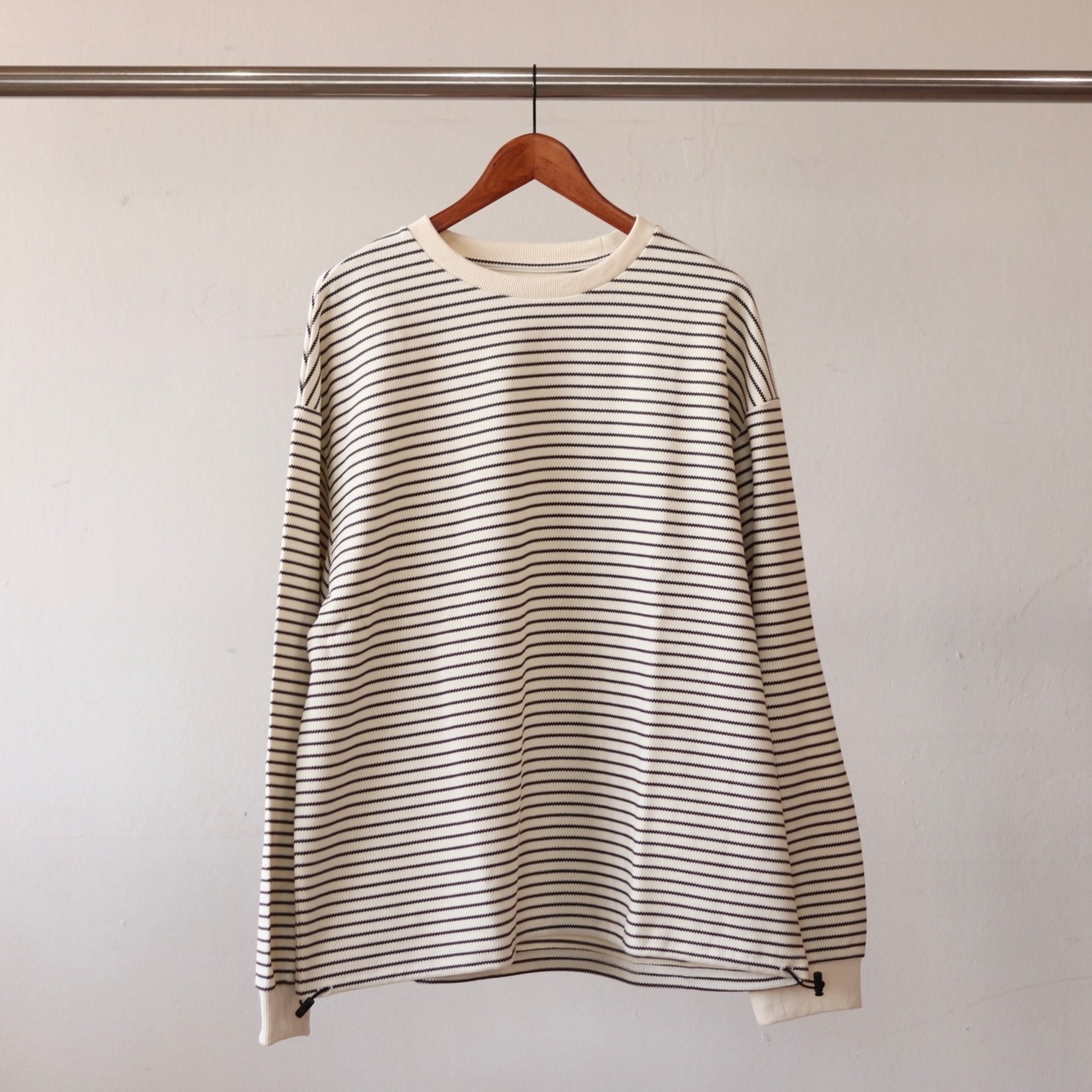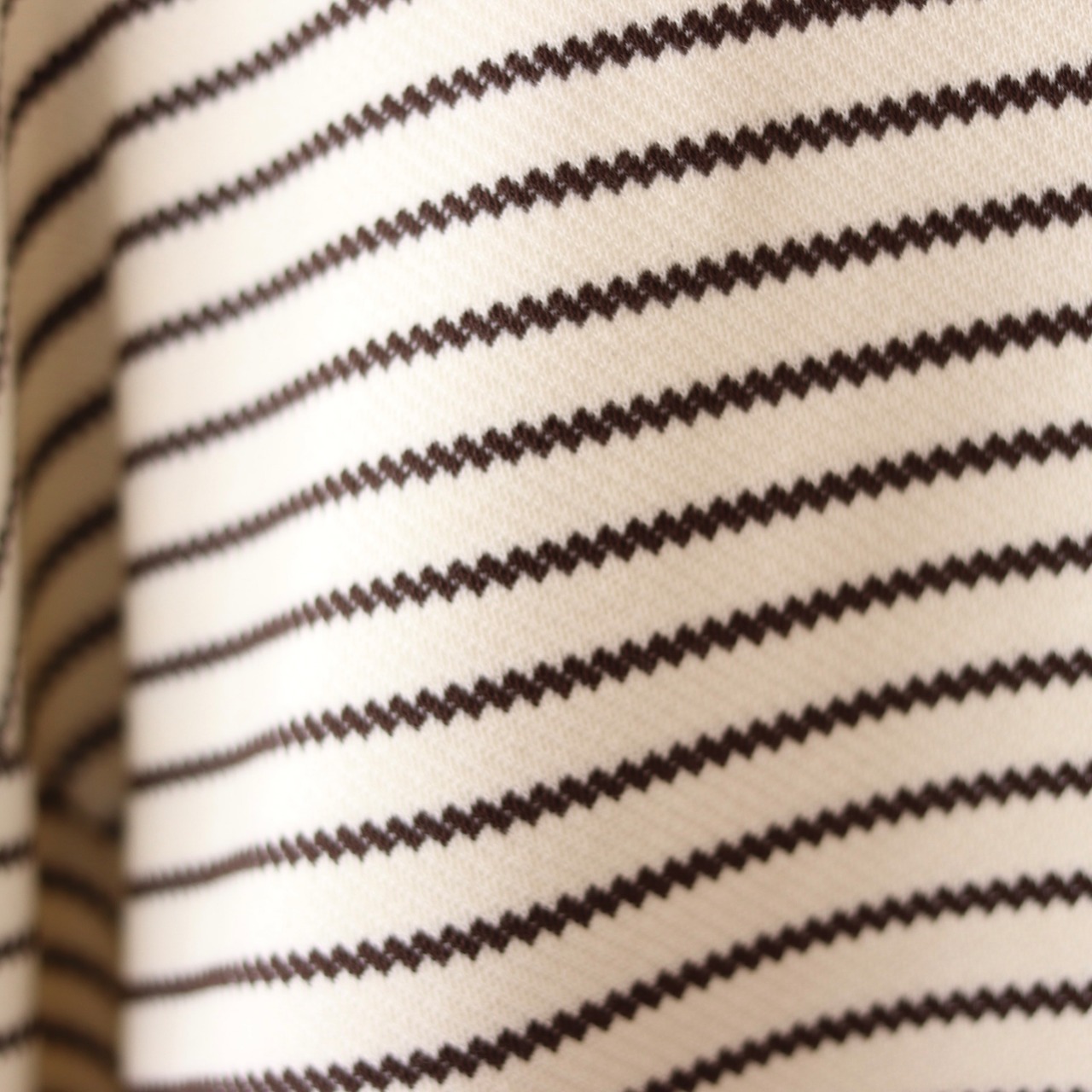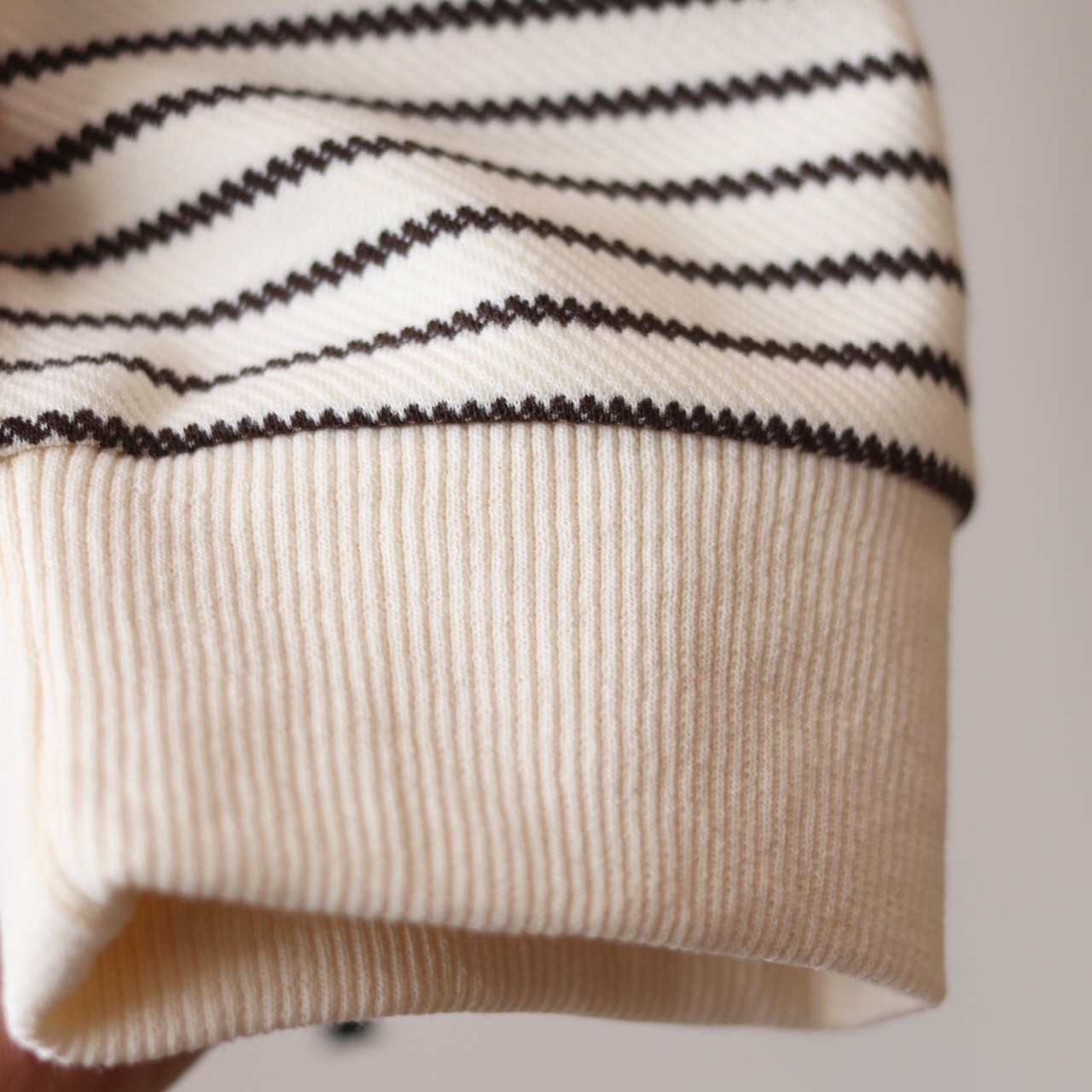 一般的なボーダーTシャツとは違い編みで変化を加えボーダー柄がジグザグ波を打ったようにみえる長袖Tシャツ。