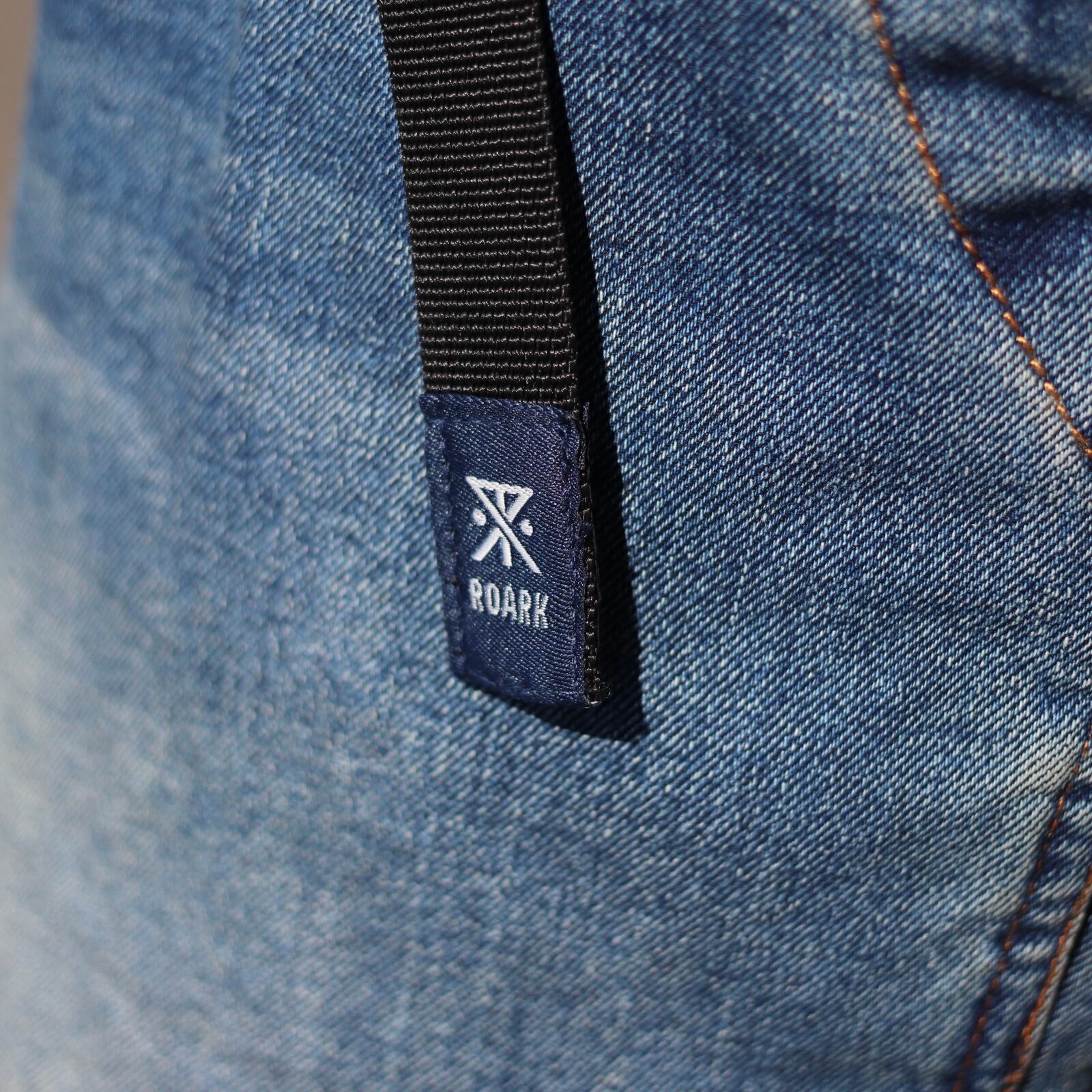 ウェービングベルトにはROARKのブランドアイコン、バックポケットにはブランドロゴがあしらわれています。