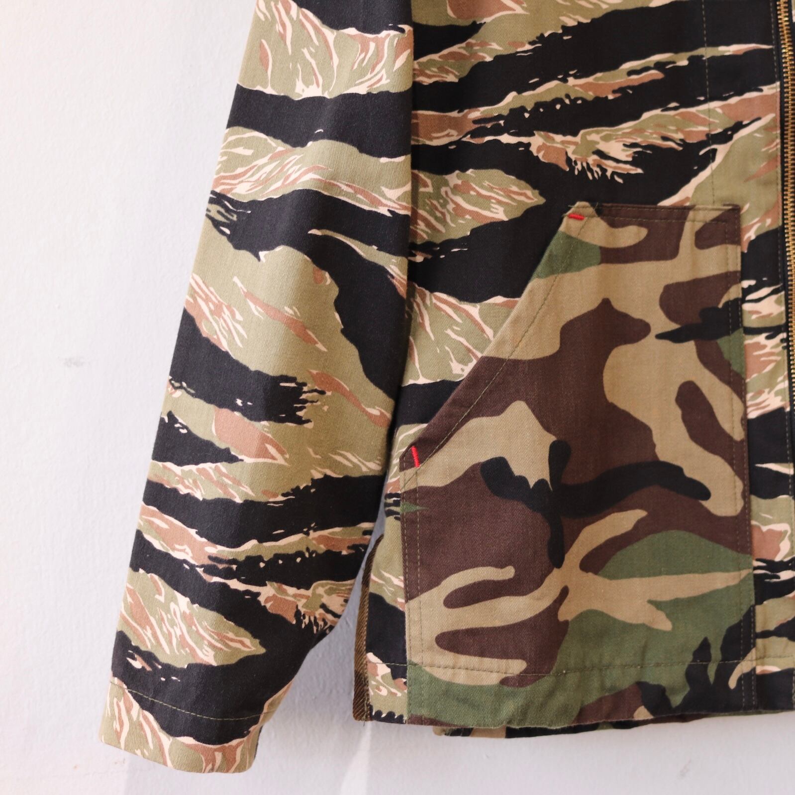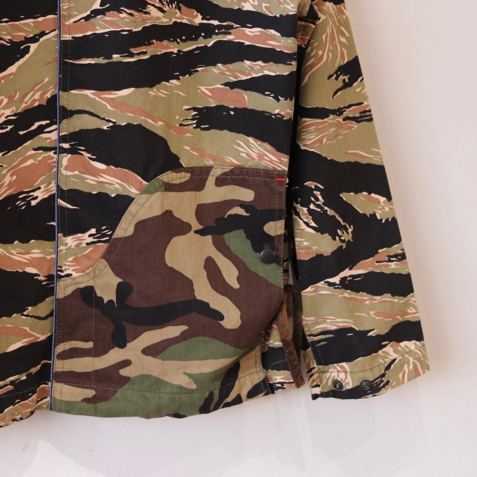 アメリカ軍のタイガーストライプと最もよく浸透しているウッドランドカモの2パターンを切替たマウンテンパーカー。